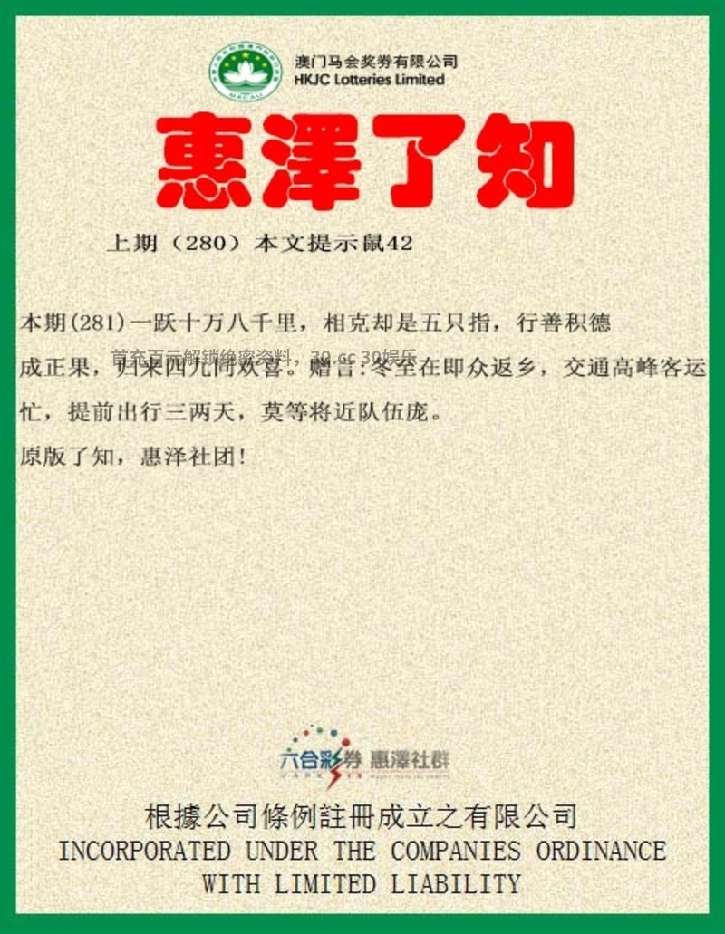 282期:电脑推算/正版解一肖输精光/玄机解一肖/六合皇五字
